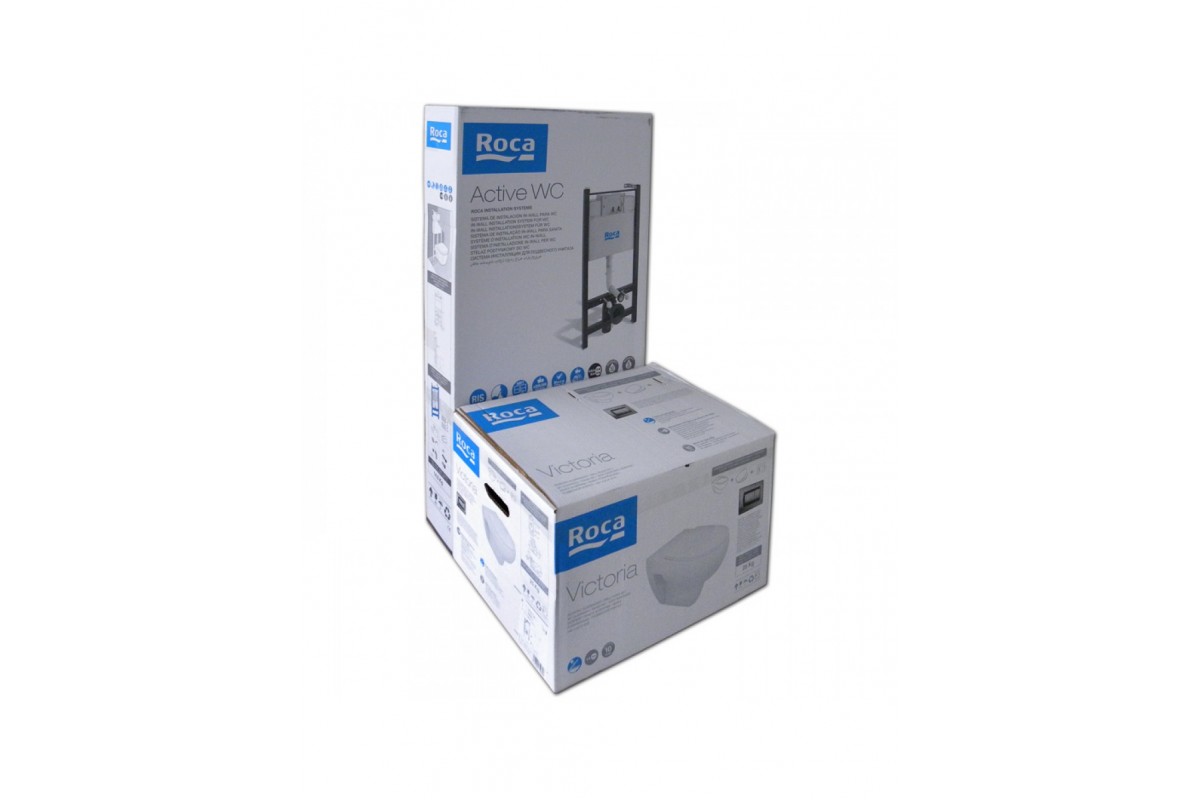 Комплект 4 в 1 Roca (Унитаз подвесной Victoria + Инсталляция + Крышка-сиденье с микролифтом + Кнопка хром) 893100000