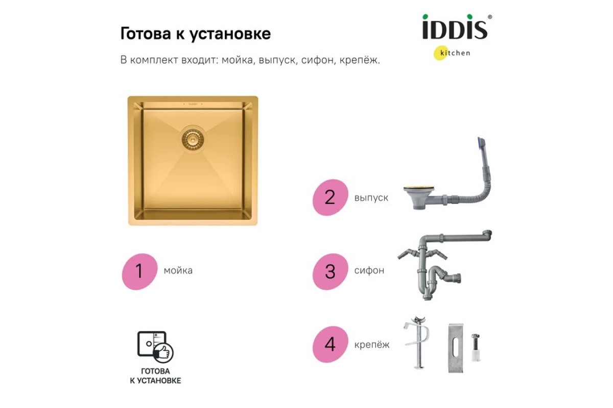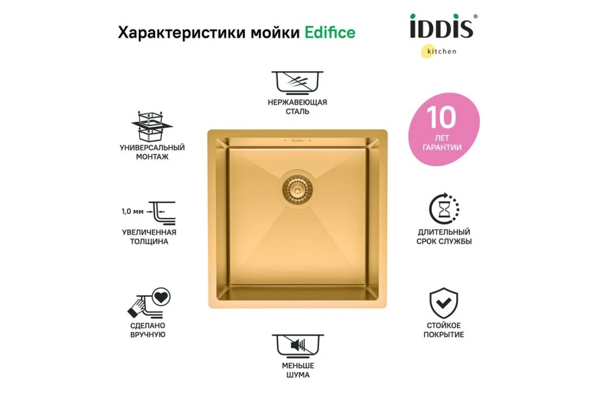 Мойка кухонная IDDIS Edifice EDI44B0i77 матовое золото