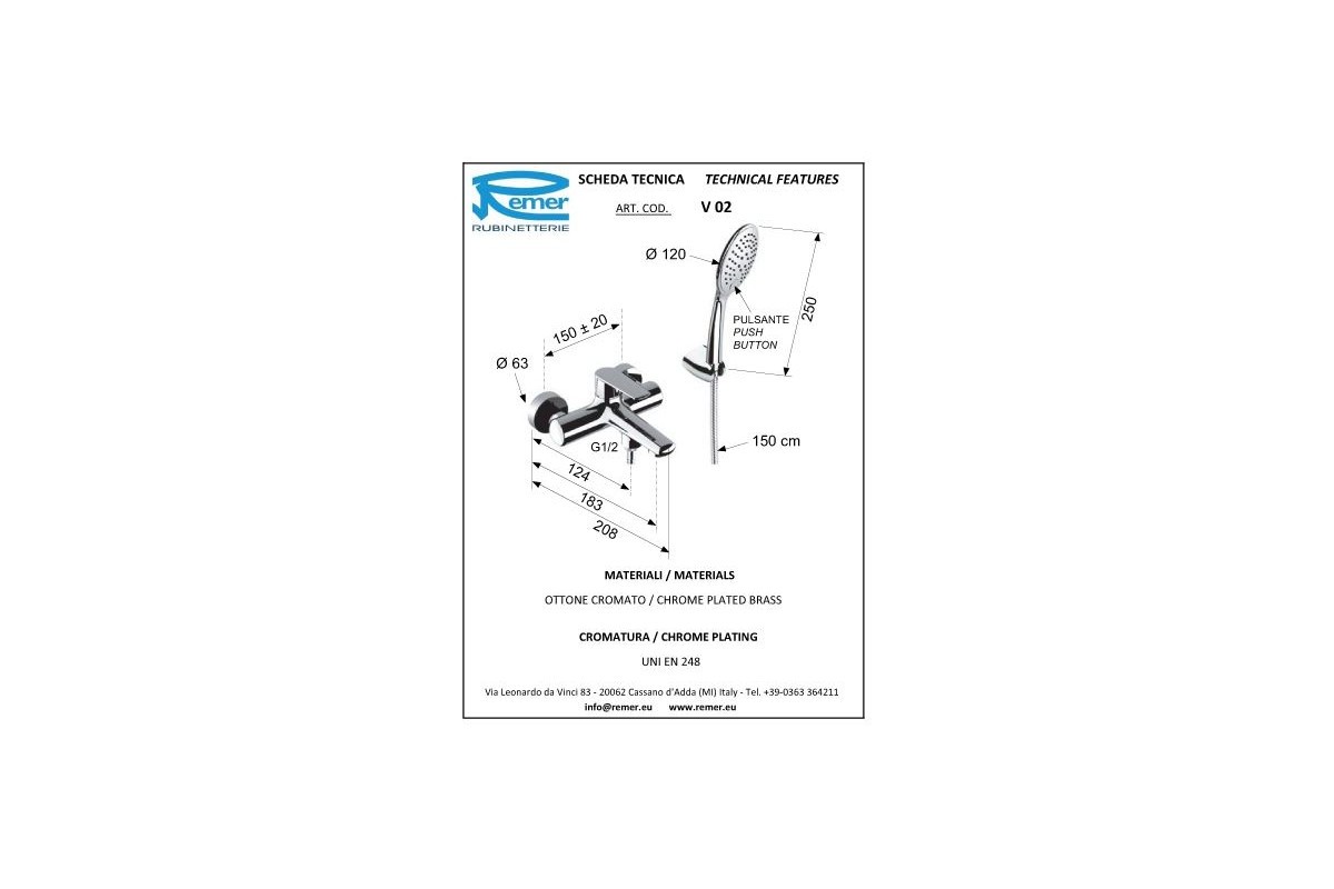 Смеситель Remer Vanity V02 для ванны и душа, хром