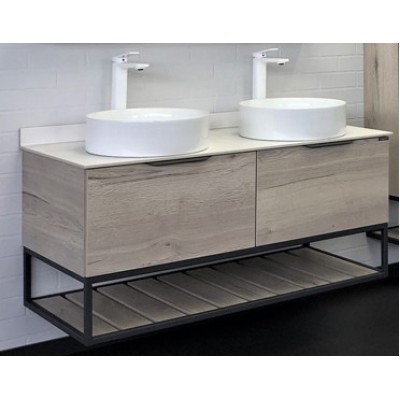 Тумба Comforty Порто 120-2 Дуб дымчатый с белой столешницей, с двумя раковинами Comforty 9110