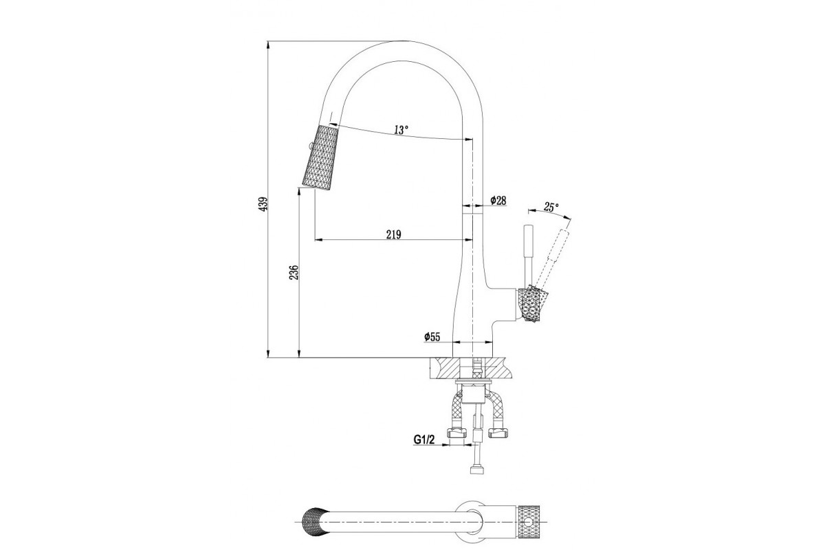 Смеситель D&K Rhein Schiller DA1462505B для кухонной мойки с выдвижной лейкой