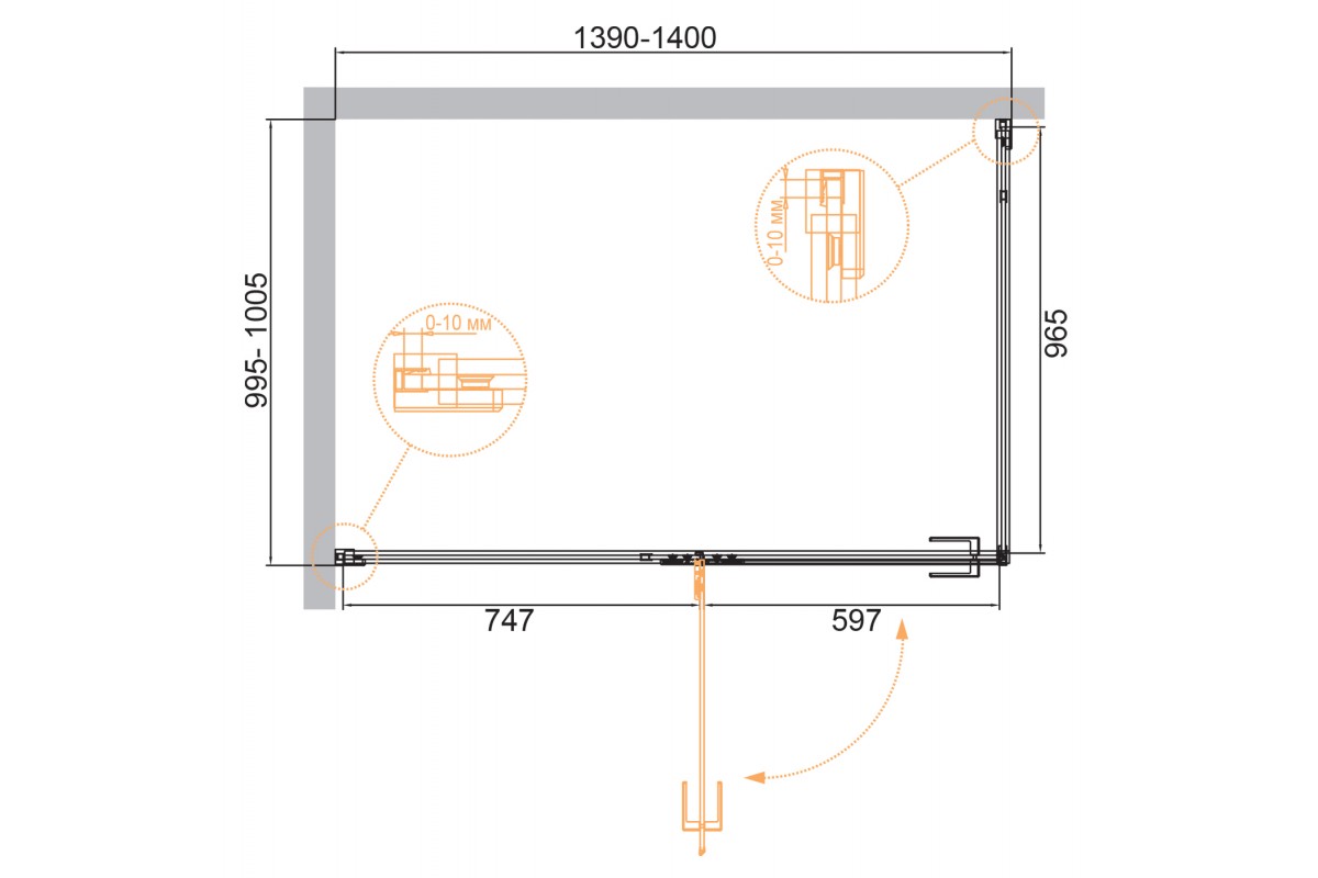 Душевой уголок Cezares Bellagio 1400x1000x1970 BELLAGIO-AH-1-140/100-C-BORO профиль брашированное золото, стекло прозрачное