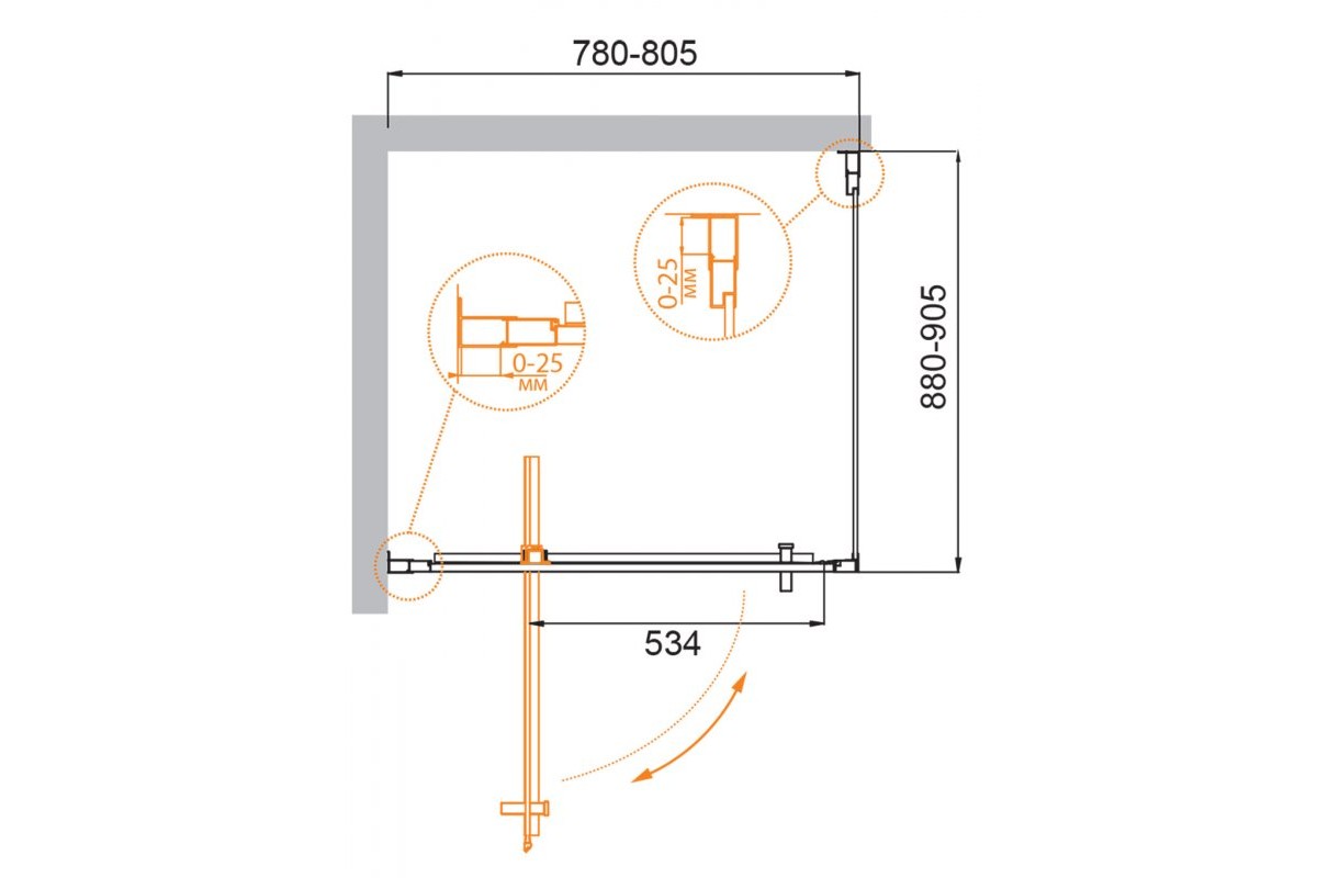 Душевой уголок Cezares Molveno 800х900х1950 MOLVENO-AH-1-80/90-C-Cr-IV профиль хром, стекло прозрачное