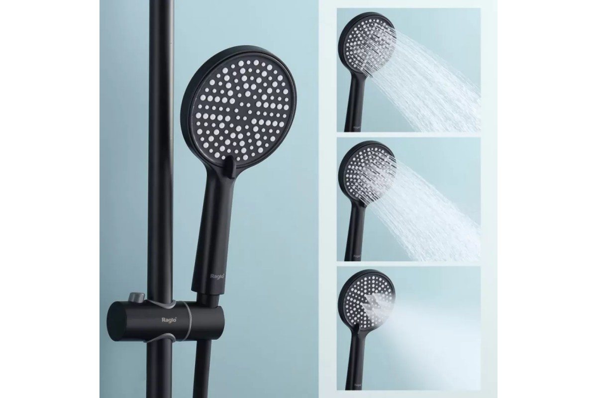 Душевая система Raglo R20.26.06 с термостатом, черный/матовый