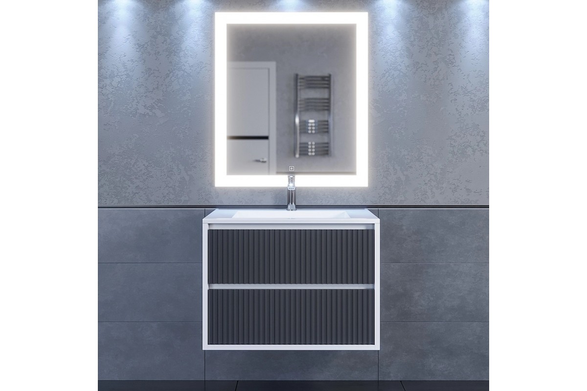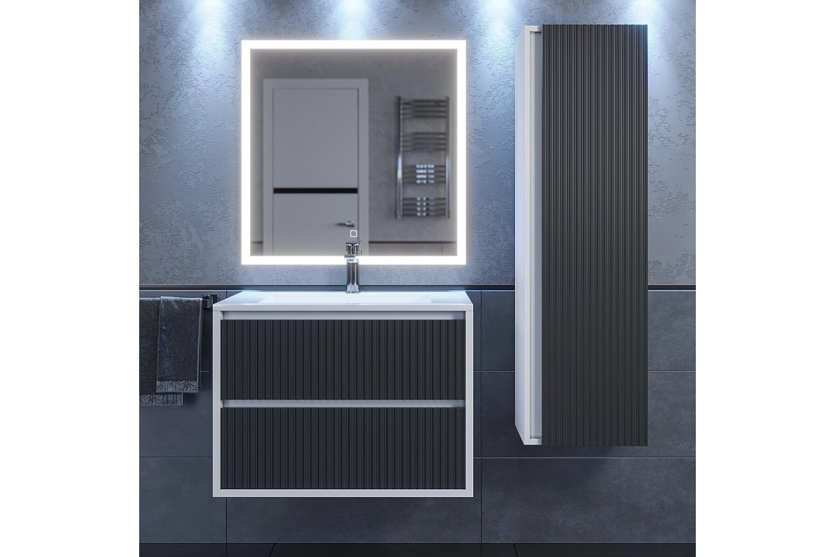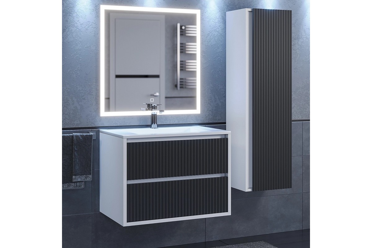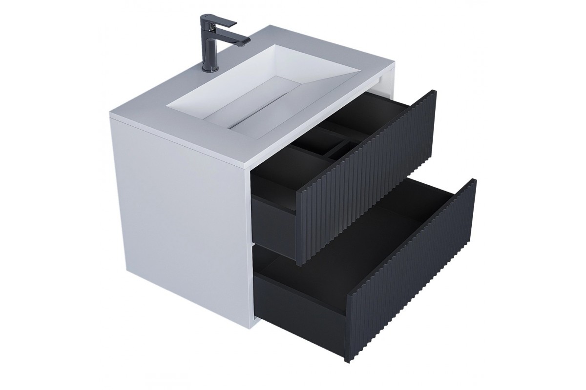 Тумба с раковиной Uperwood Next Premium 70 см, подвесная, 2 ящика, белая/графит 3930205163