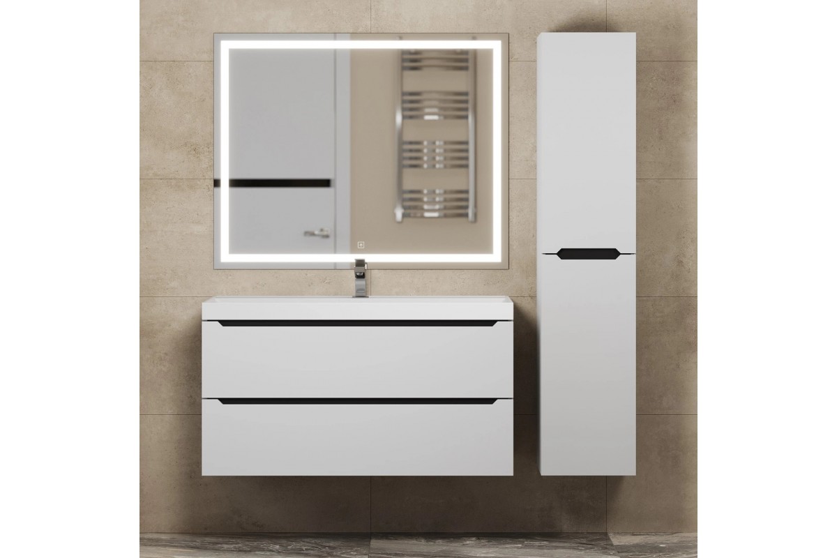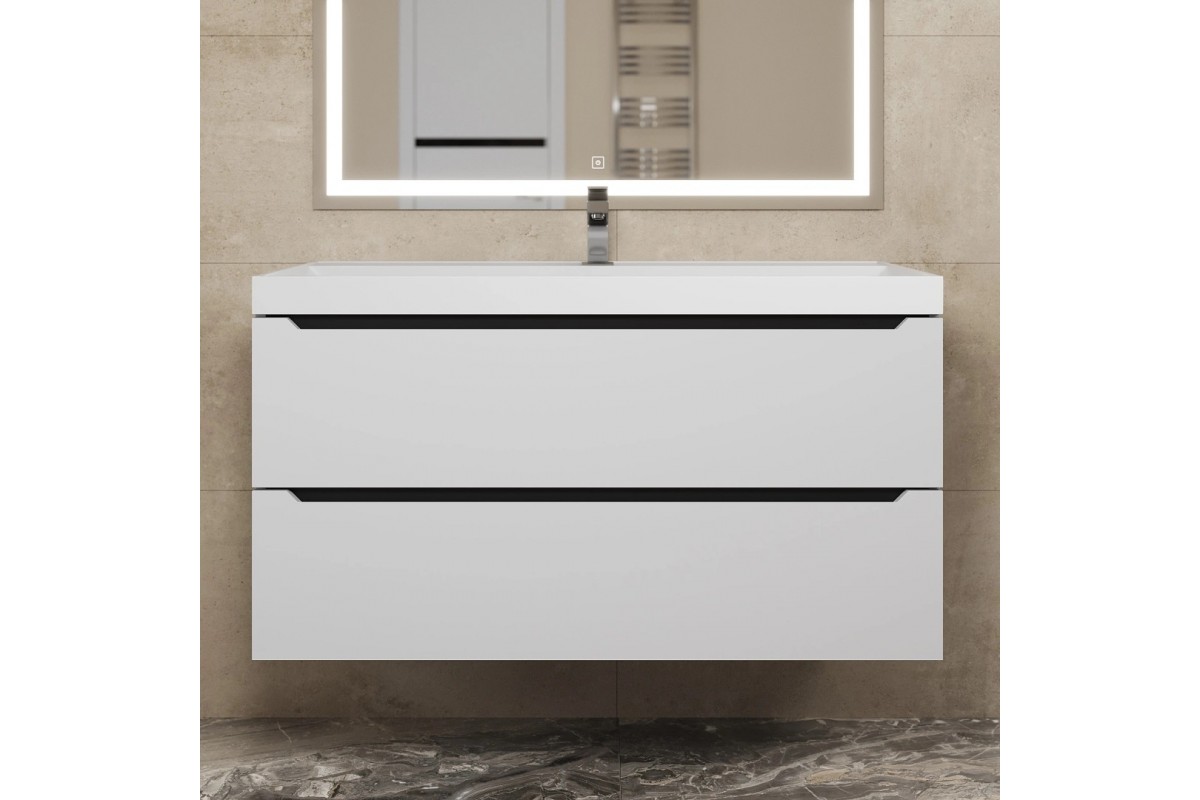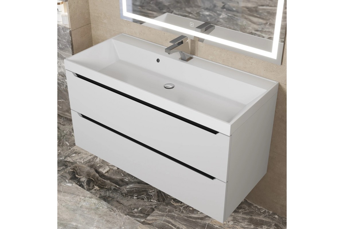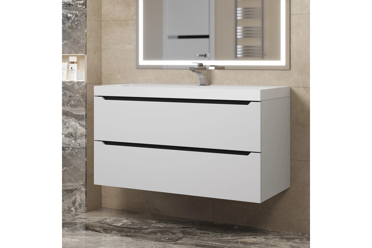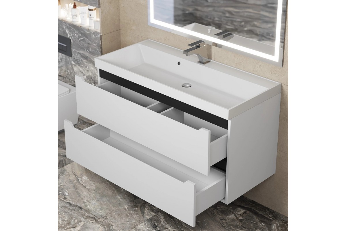 Тумба с раковиной Uperwood Tanos 100 см, подвесная, белая матовая/графит 29111020233