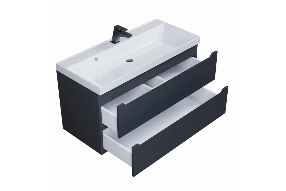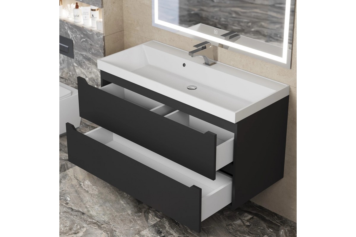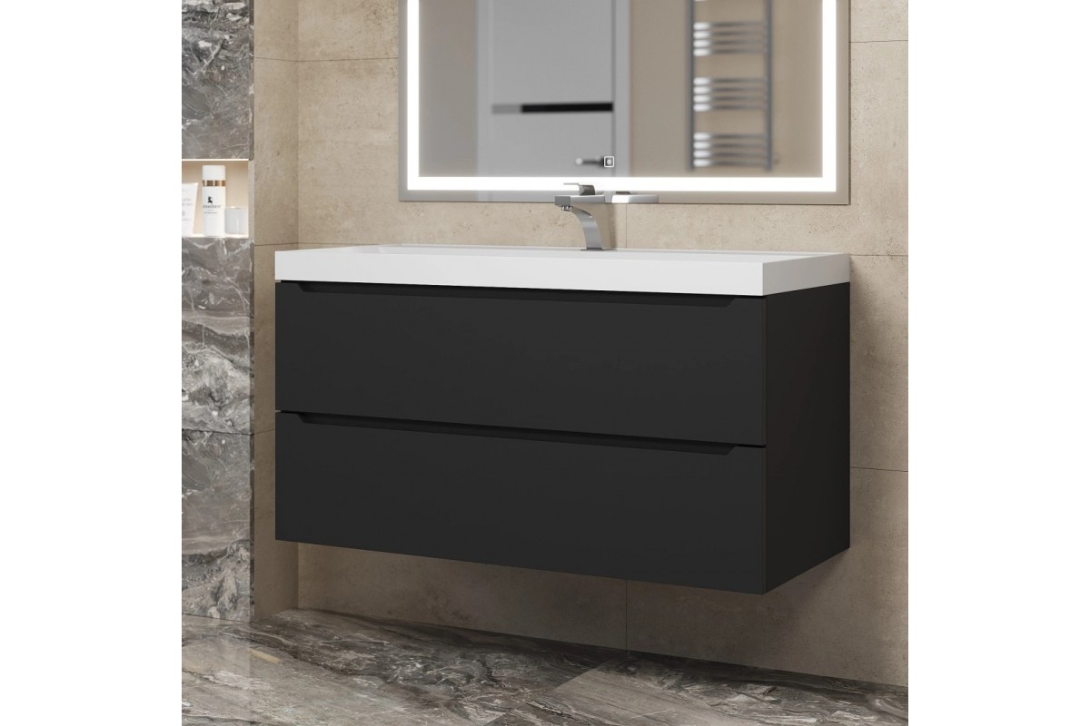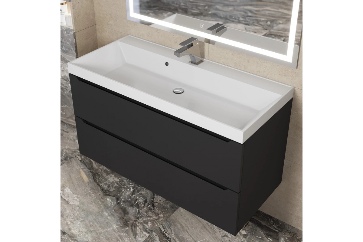 Тумба с раковиной Uperwood Tanos 100 см, подвесная, черная матовая 291020256