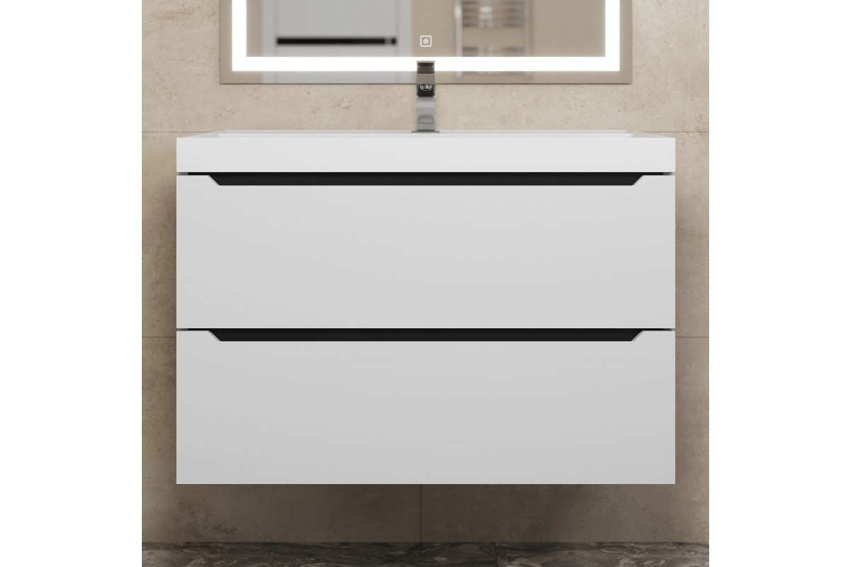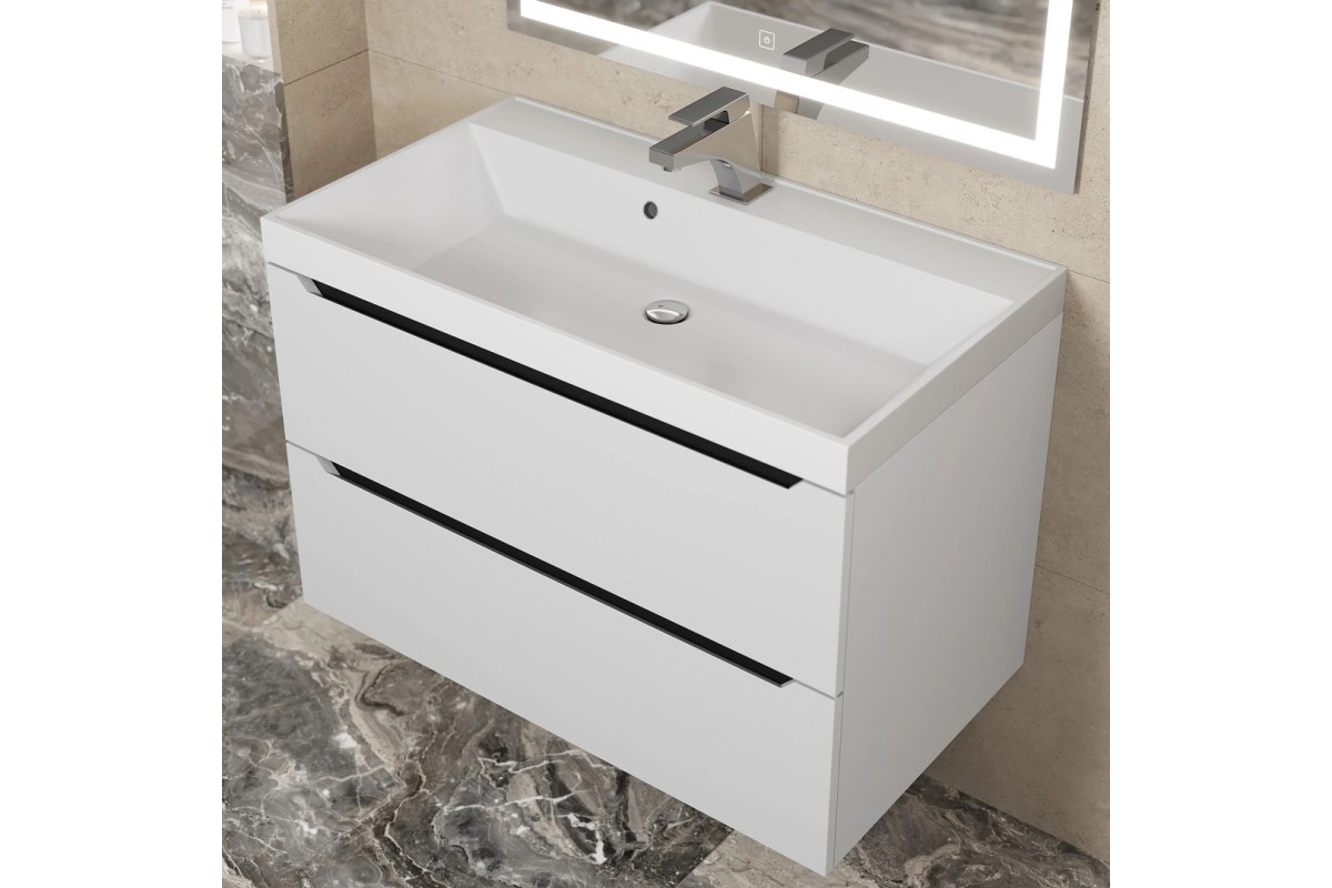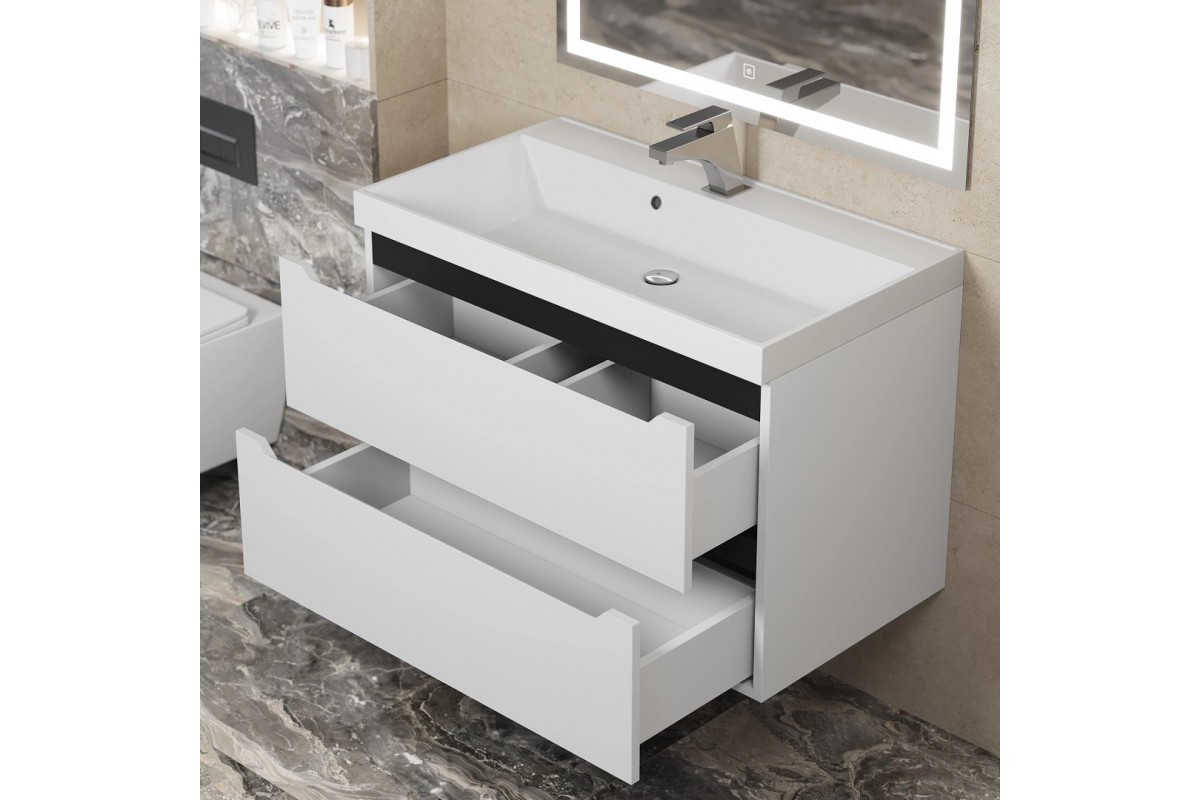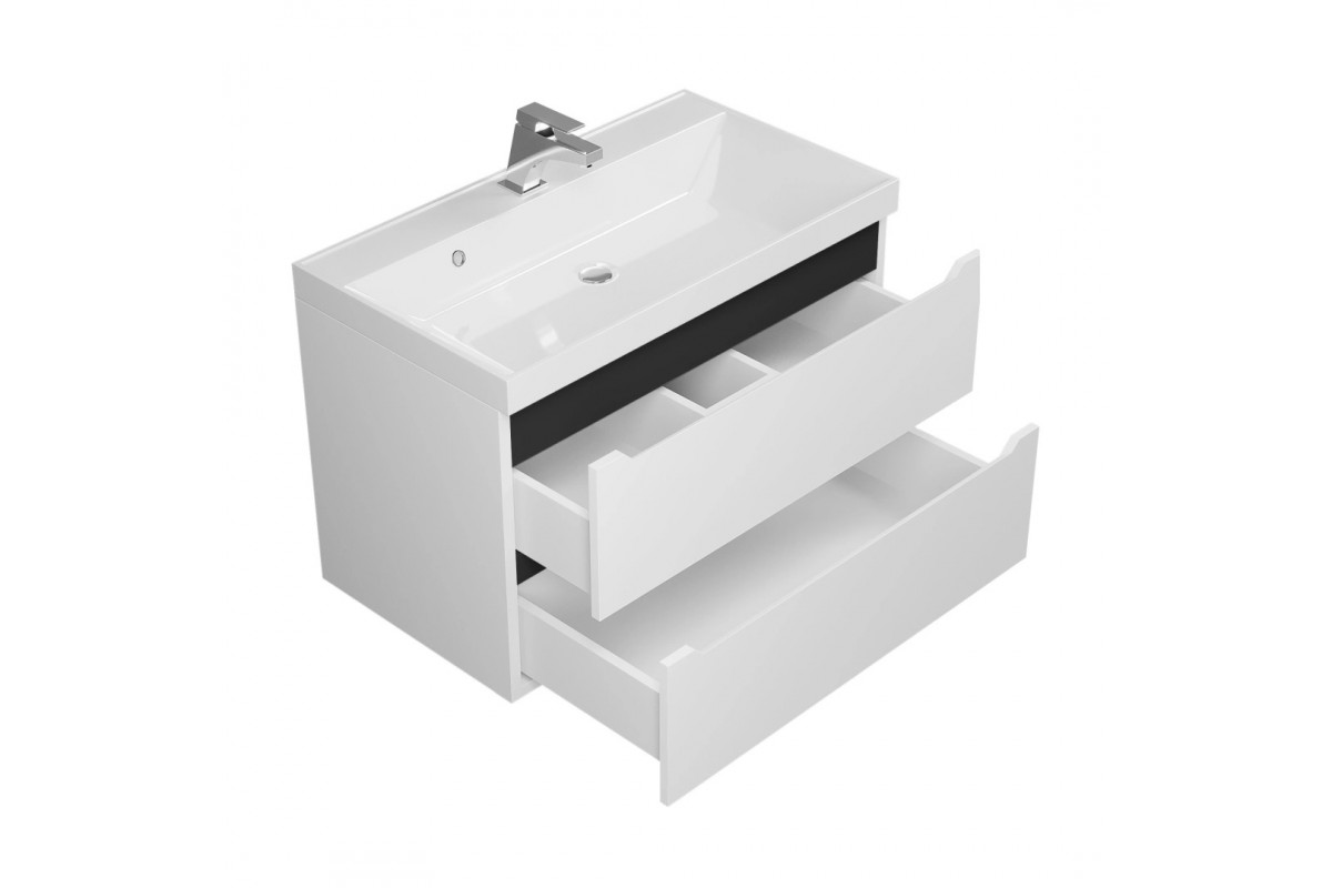 Тумба с раковиной Uperwood Tanos 80 см, подвесная, белая матовая/графит 29111020231